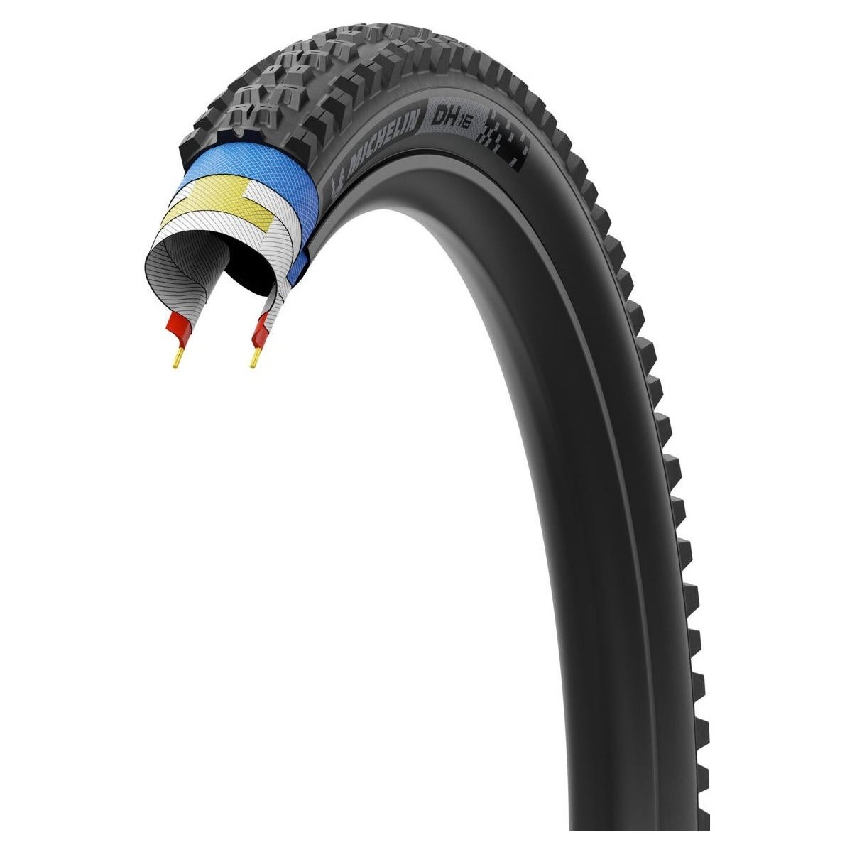 Michelin DH16 Racing Line er et dæk, der er designet til downhill og enduro, og som prioriterer fart, greb og beskyttelse. Ifølge Michelin selv tilbyder dette dæk: