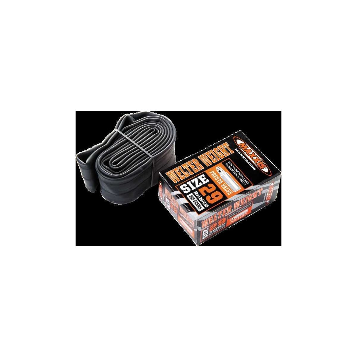 Punkteringssikre Maxxis Welter Weight er en holdbar slange med en godt afbalanceret konstruktion, hvor slangen er tilstrækkelig kraftig (0,9 mm) til at give dig god beskyttelse mod punkteringer, men samtidig tilstrækkelig tynd til at sikre en lav vægt. Slangen giver dig en pålidelig beskyttelse mod punkteringer, og dens kvalitetsventiler sørger desuden for, at slangen holder trykket selv over rigtig lange perioder.