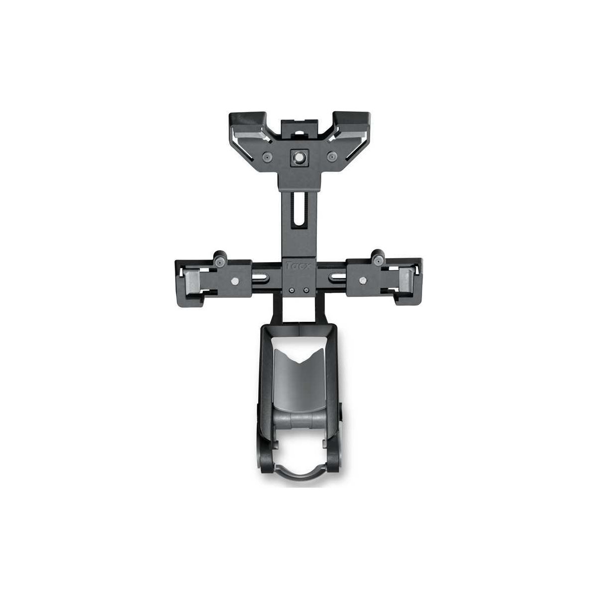 Tacx Holder til tablets er et smart styrefæste designet til at montere en tablet på styret. Holderen passer til styr med en diameter på 26-35 mm og kan tilpasses forskellige skærmstørrelser. Designet sørger for, at tabletten er placeret en smule foran styret for at undgå, at sved rammer skærmen.