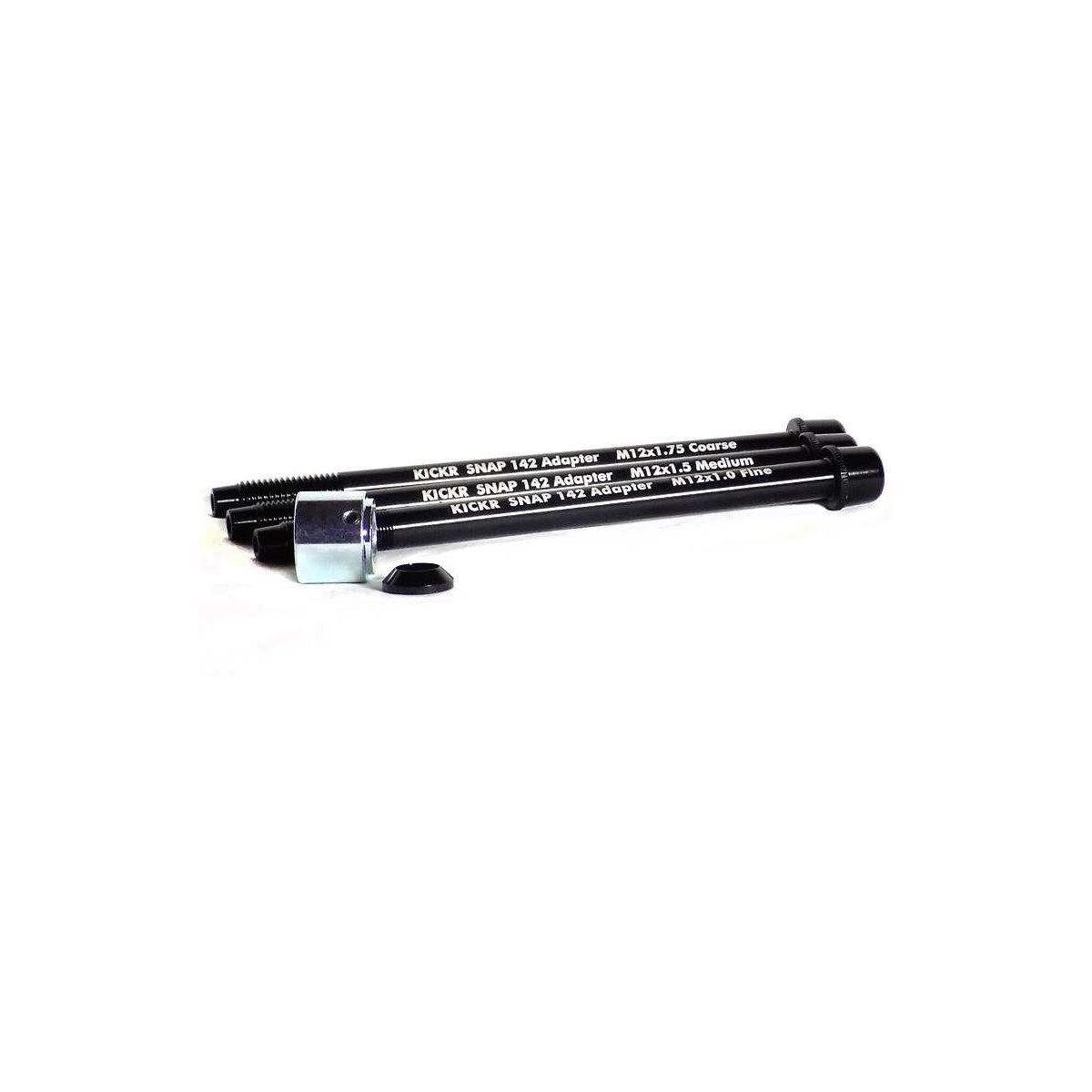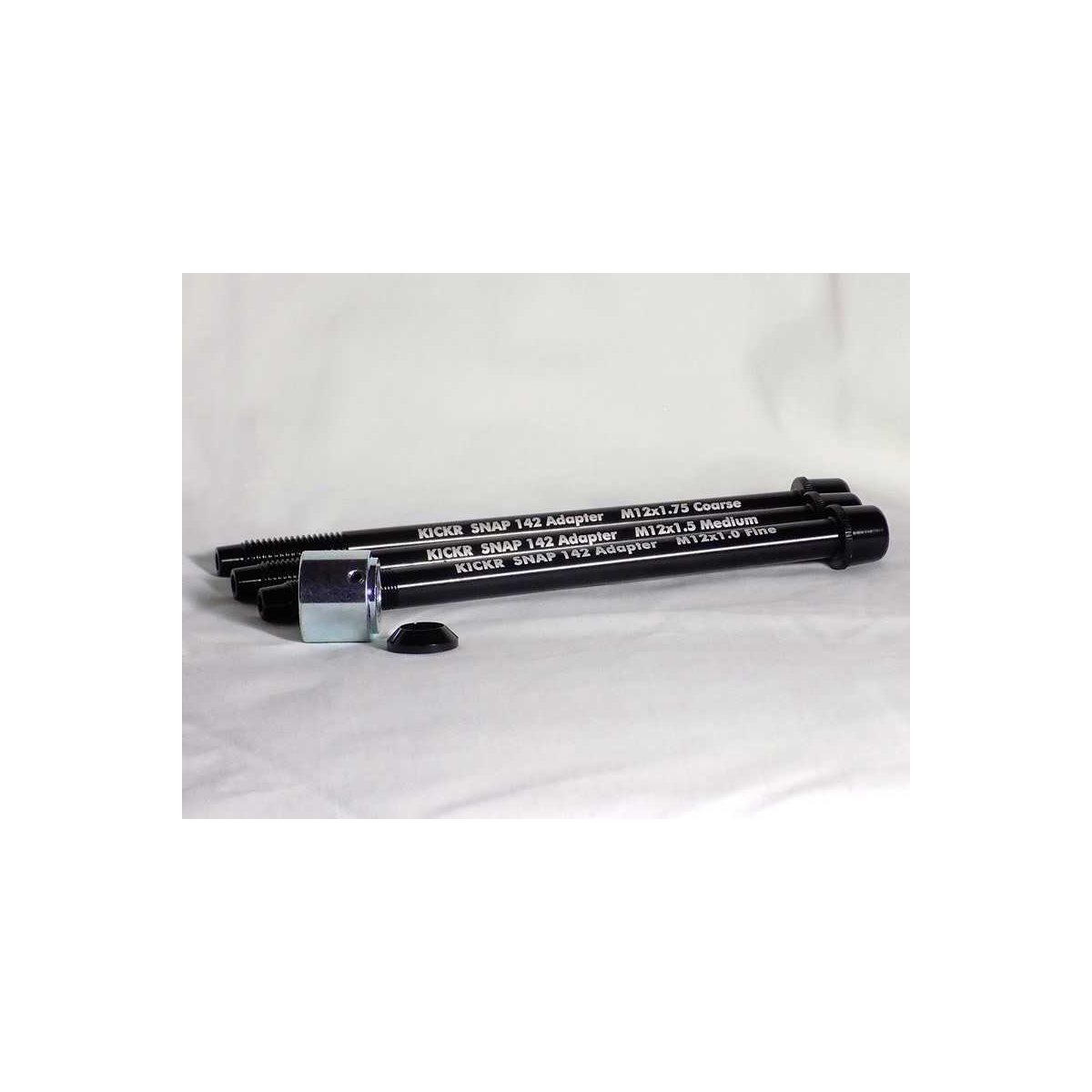 Wahoo Fitness KICKR SNAP 142X12 Thru Axel Adapter er et adaptersæt, der giver dig alt, hvad du behøver for at kunne montere en 142x12 gennemgående aksel sikkert på din KICKR SNAP træner. Sættet omfatter 3 forskellige størrelser, M12 x 1,75, M12 x 1,5 og M12 x 1,0.