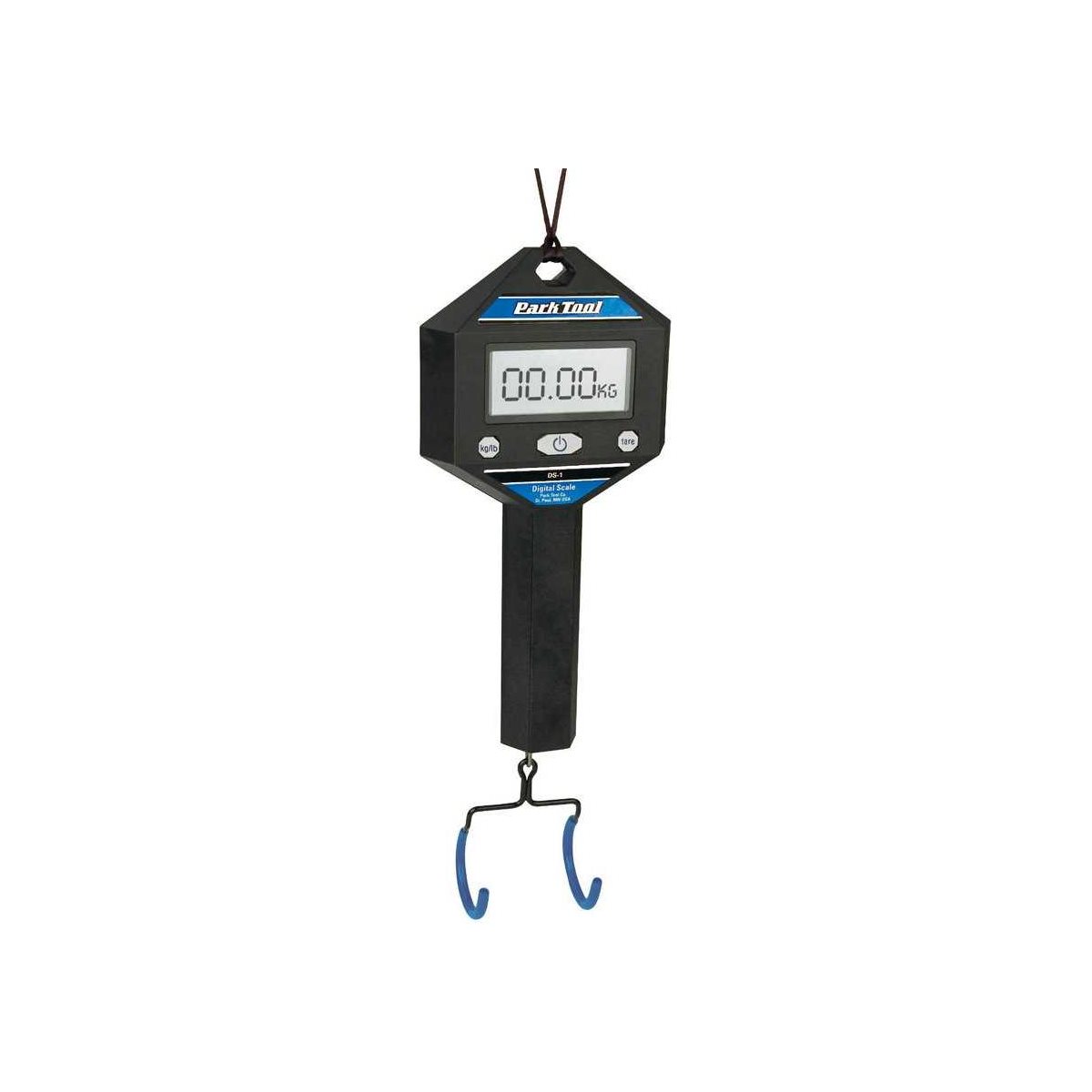 Park Tool DS-1 er en digital vægt til at veje cykler, rammer og andre små dele. Vægten går fra 20 g til 25 kg. Dens form gør, at den nemt kan fastgøres i de fleste reparationsstativer. Krogen er gummibelagt. Fungerer med 3 stk. AAA batterier (ikke inkluderet).