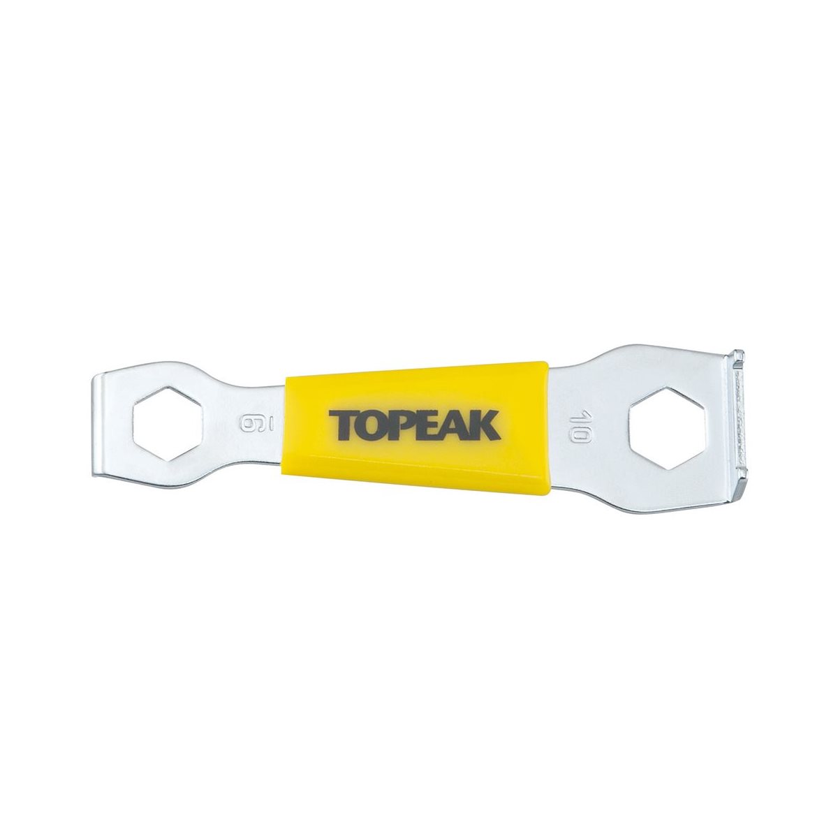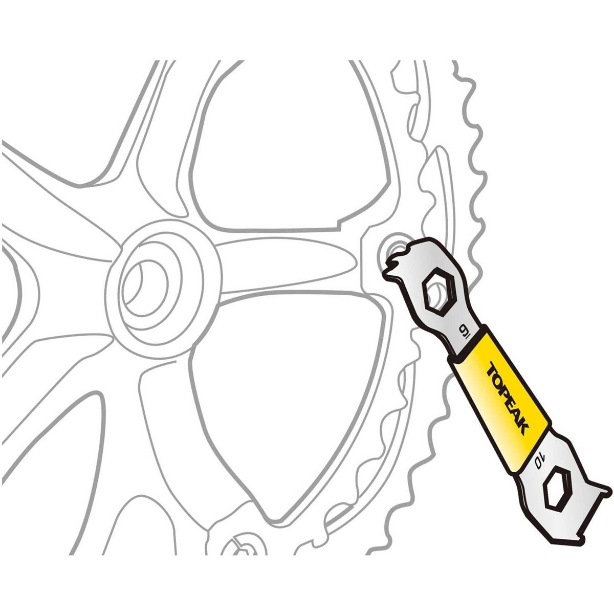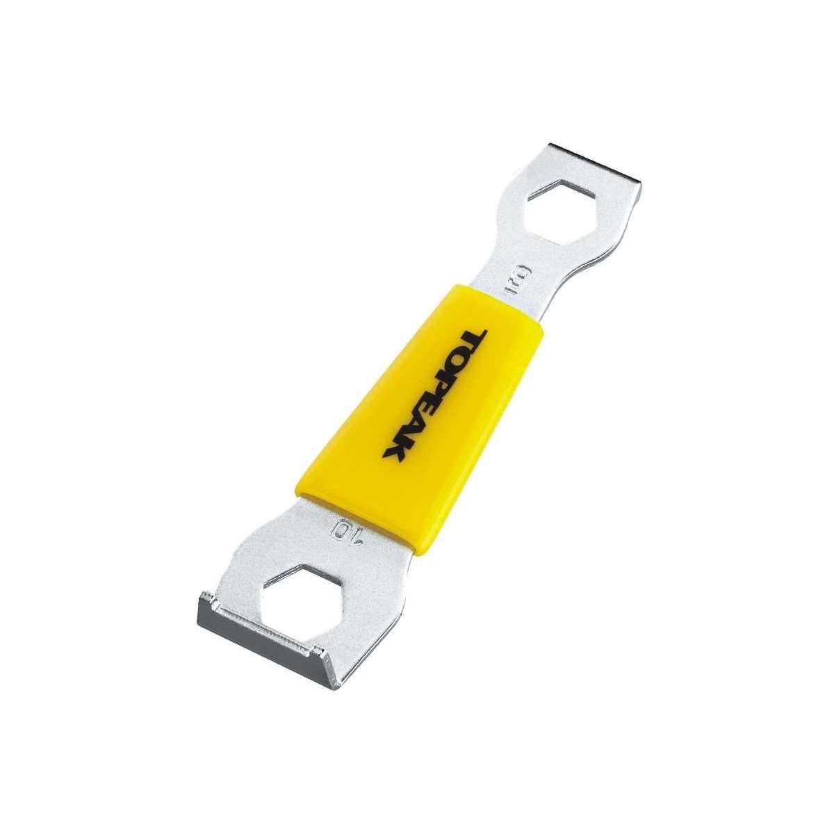 Drevbolteværktøjet Topeak Chainring Nut Wrench er fremstillet i hærdet stål og har gummigreb for sikker håndtering.