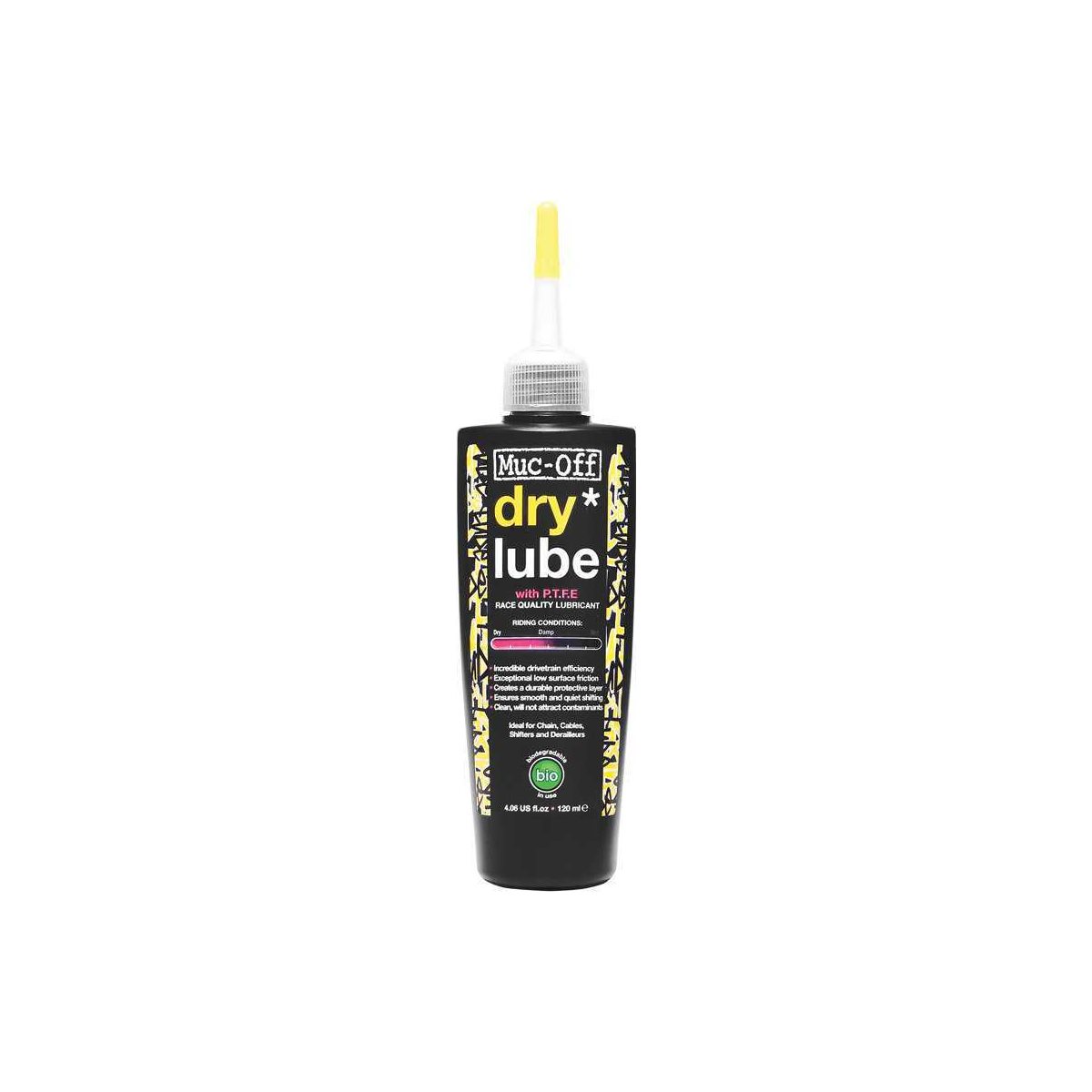 Muc-Off Dry PTFE Chain Lube er designet til at modstå det ekstreme tryk, som nutidens moderne kæder udsættes for. Dette alsidige og tørre kædesmøremiddel besidder fremragende penetrerende egenskaber, som sikrer at hver eneste led i kæden er grundigt smurt. Smøremidlet er ideelt at anvende på såvel kæder, pedalcleats, gearskiftere som derailleur.