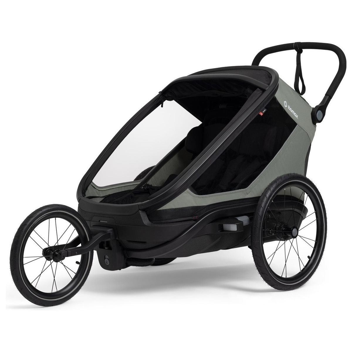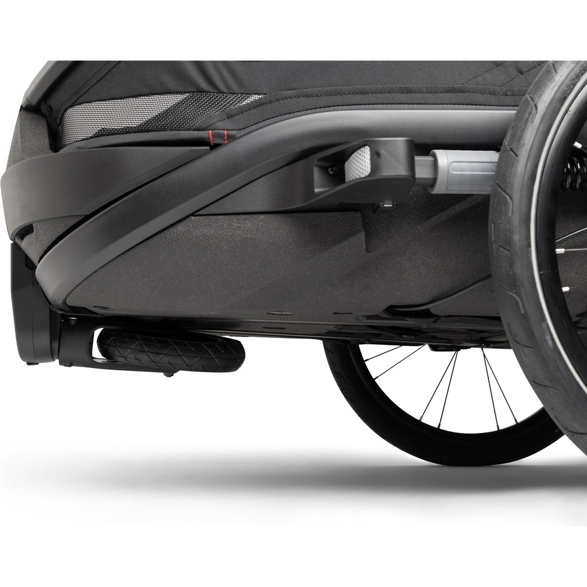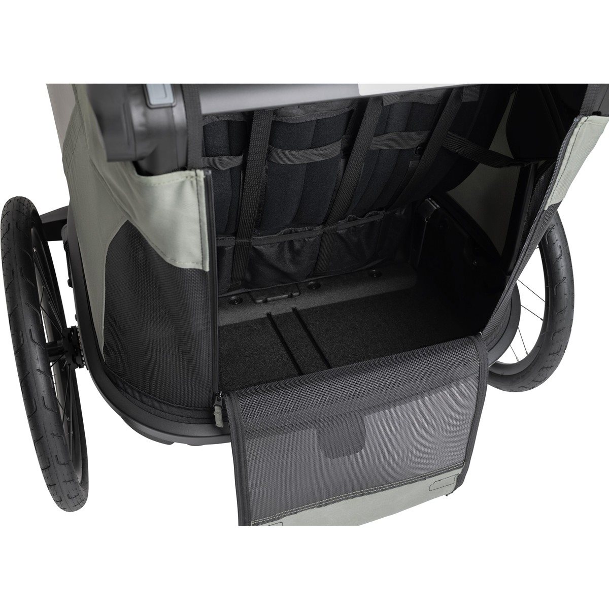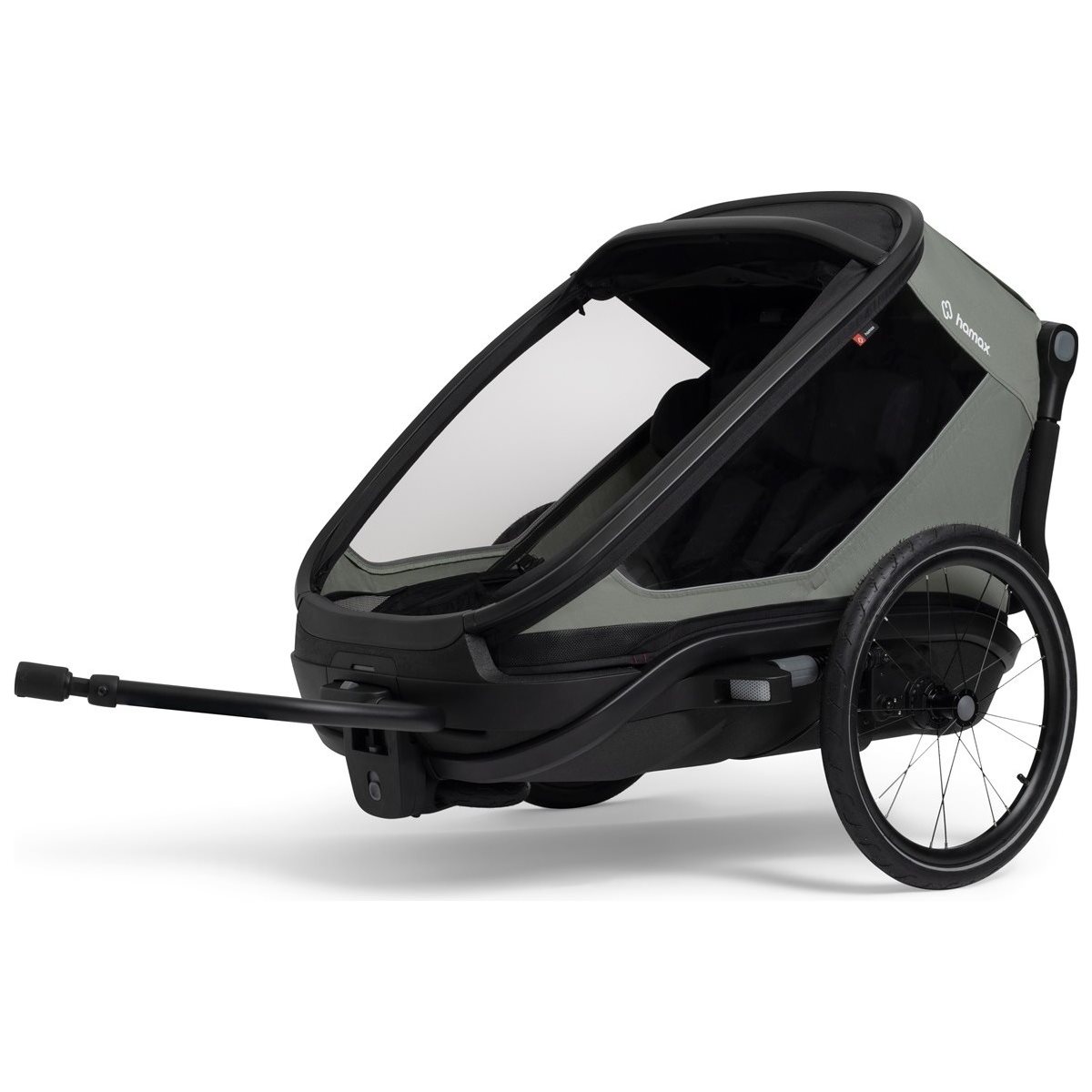 Interiøret i Outback Next Double er rummeligt og tilbyder den højest tænkelige komfort for to børn. De bløde sæder kan indstilles individuelt i fire forskellige positioner, hvilket gør det muligt for børnene at hvile behageligt under turen. Den rummelige kabine har også ekstra plads til hjelme og store vinduer, der giver børnene fuldt udsyn over omgivelserne. Med det smarte "Double Click"-system skifter du på få sekunder mellem at bruge vognen som cykelanhænger, barnevogn, joggingvogn eller endda som skikælk ved køb af ekstra tilbehør.