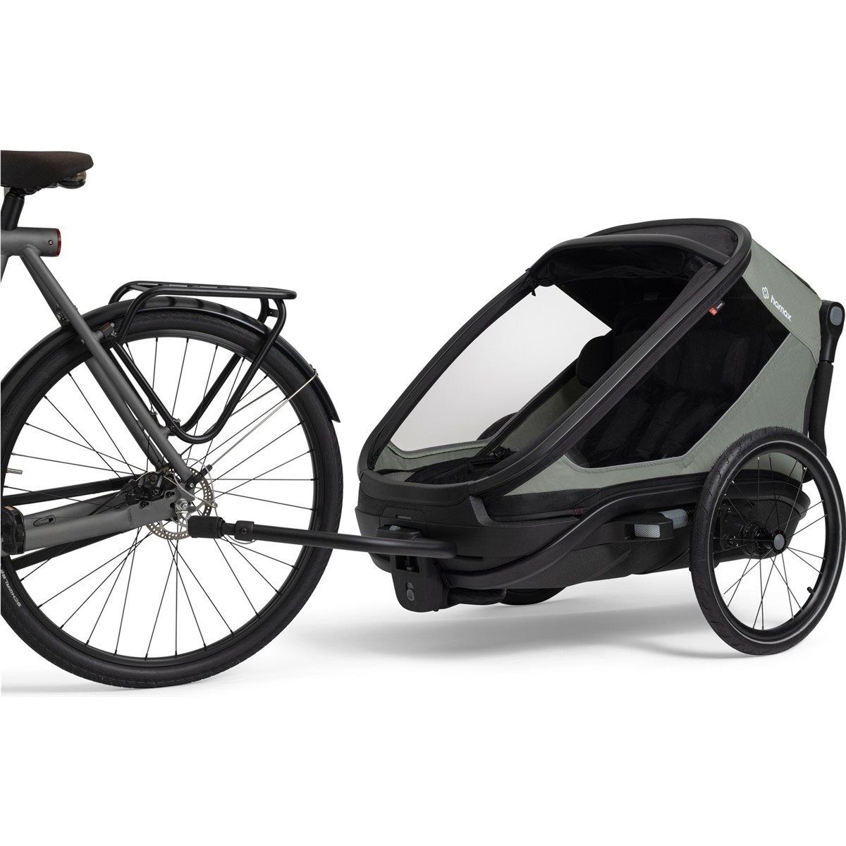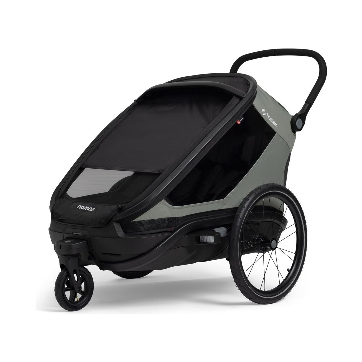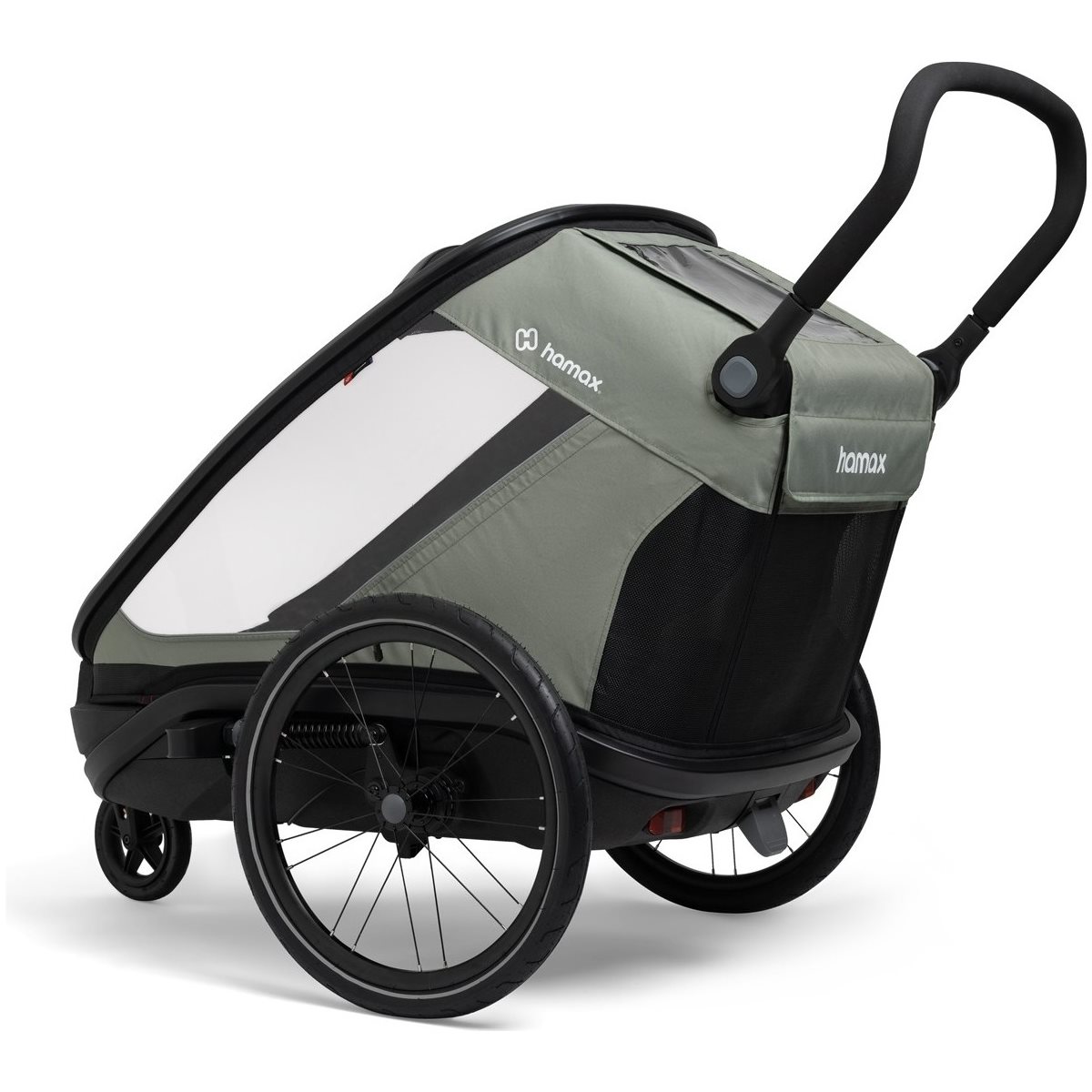 Hamax Outback Next Double Cykelanhænger er den ultimative multifunktionsvogn for den aktive familie, der kræver det allerbedste inden for sikkerhed, komfort og fleksibilitet. Denne opgraderede generation af testvinder Outback er forfinet med en række smarte funktioner, herunder en ny og sikrere foldemekanisme samt en robust, solid bundplade, der beskytter mod snavs, slud og fugt. Vognen er konstrueret med en aerodynamisk profil og et lavt tyngdepunkt, hvilket giver en enestående stabilitet bag både almindelige cykler og kraftfulde elcykler.
