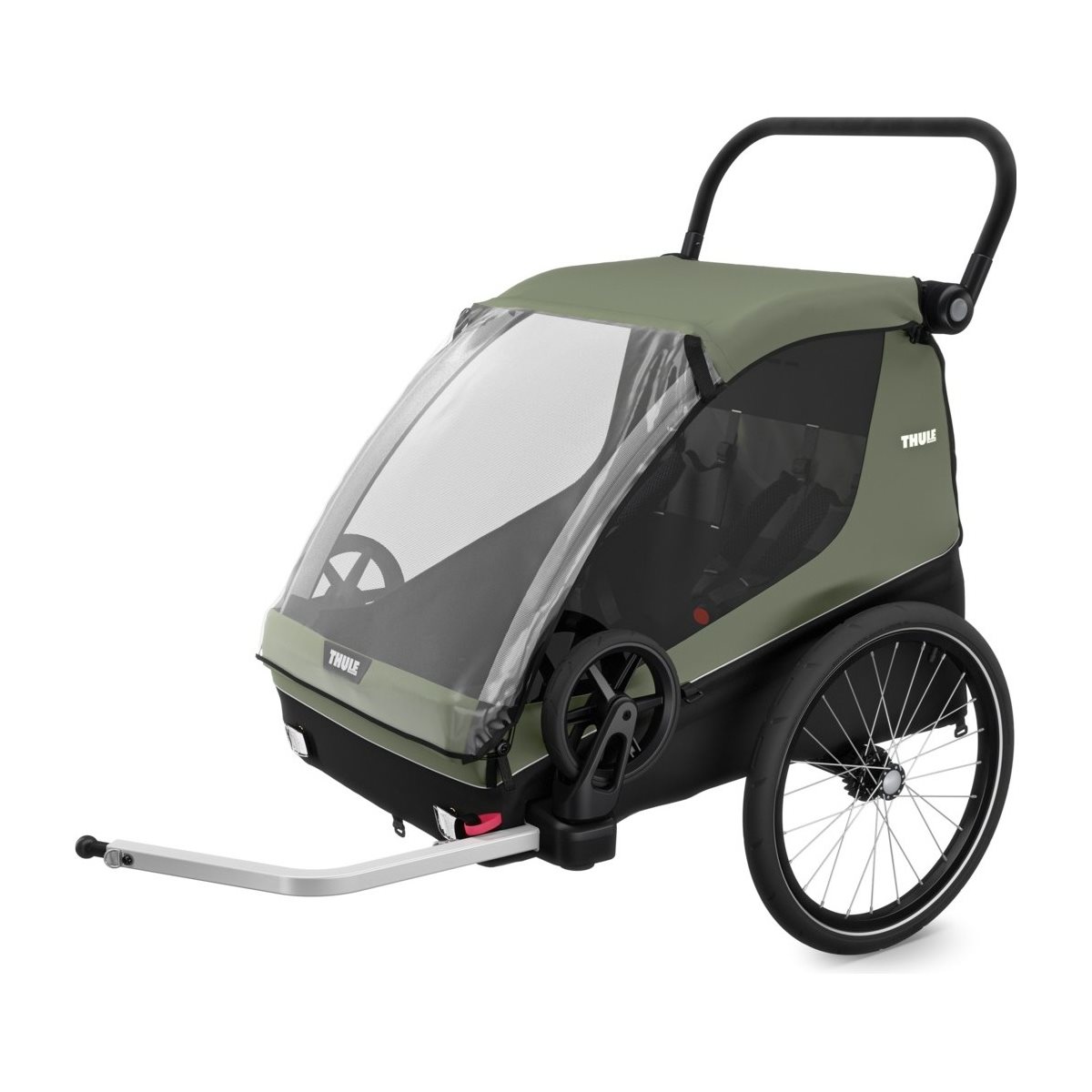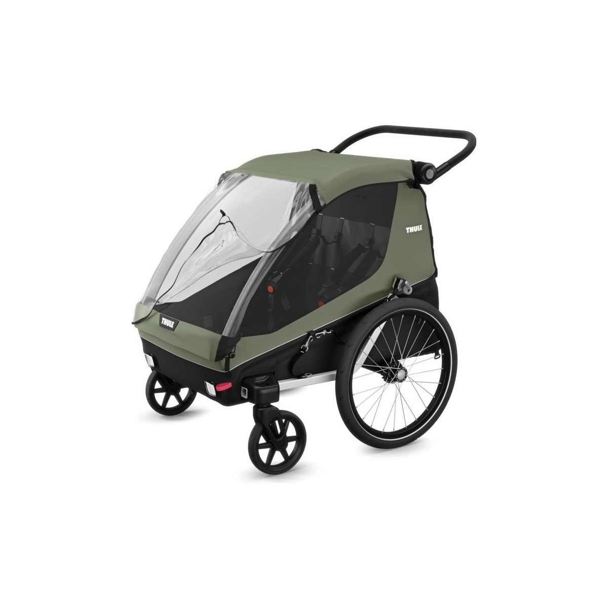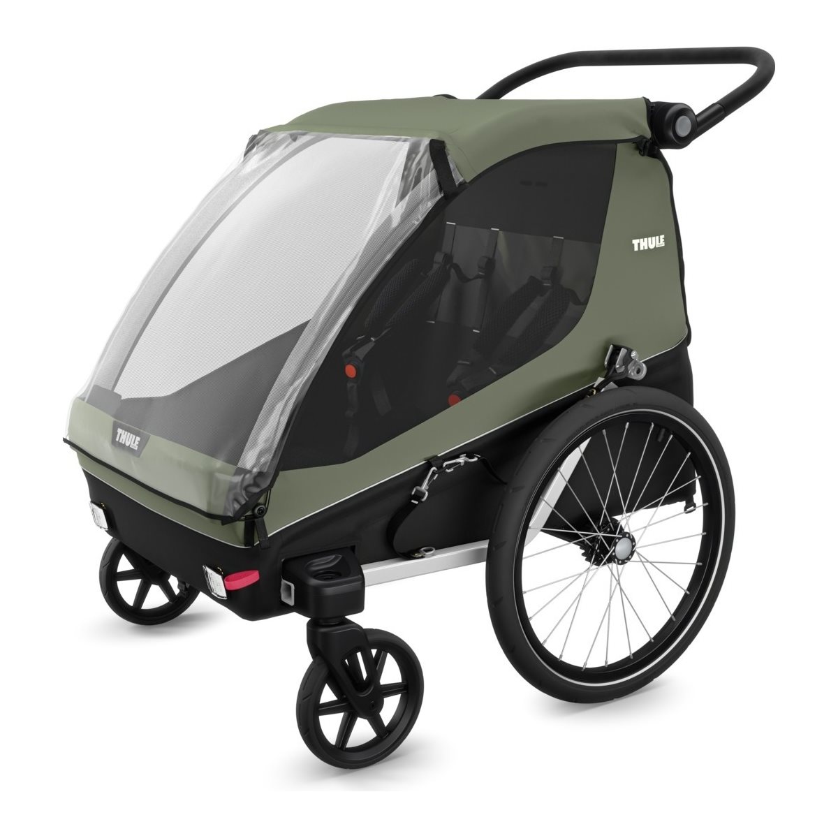 Ud over sin utrolige fleksibilitet tilbyder Thule Courier enestående kørekomfort og sikkerhed. Den leveres komplet med cykel- og gåkit og kan også suppleres med et specifikt hundekit (sælges separat). Med reflekshjul og et justerbart regn- og netoverdæk er du og dine børn klar til alle vejrforhold og døgnets alle timer.