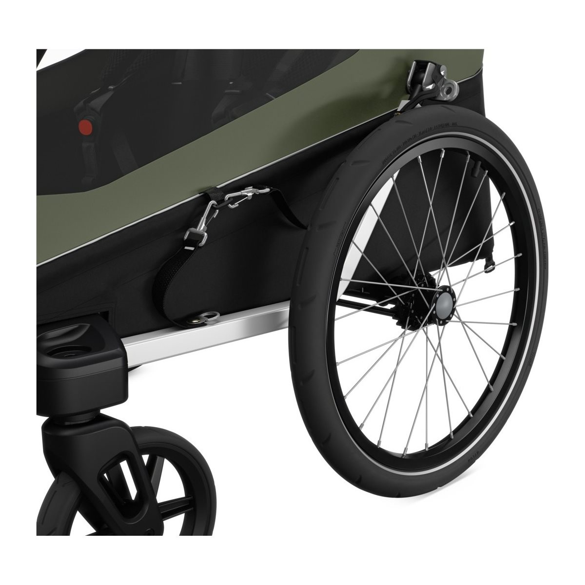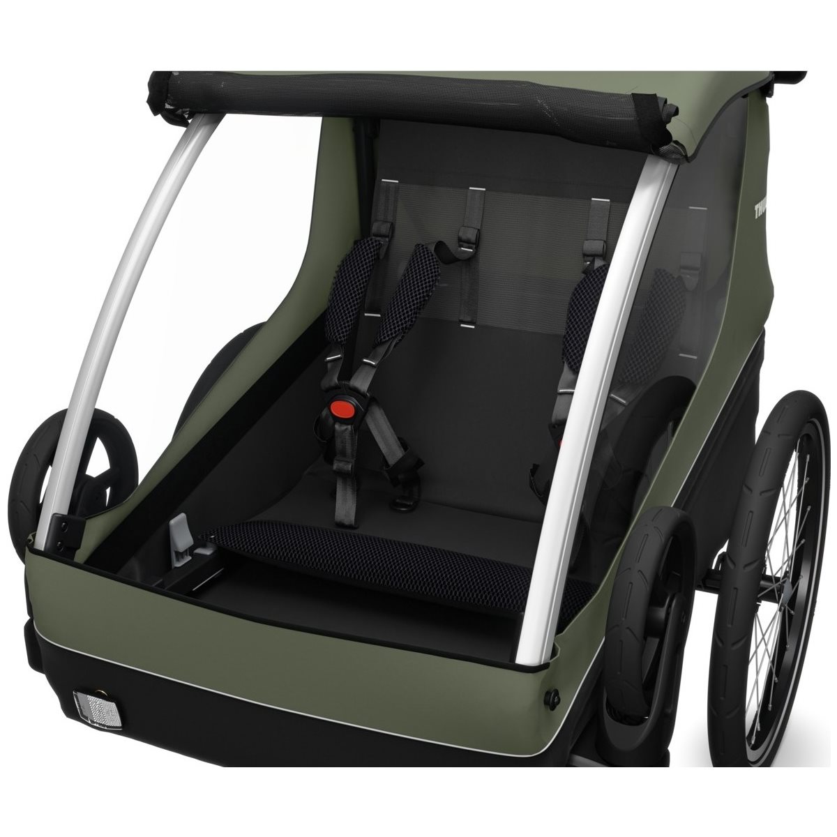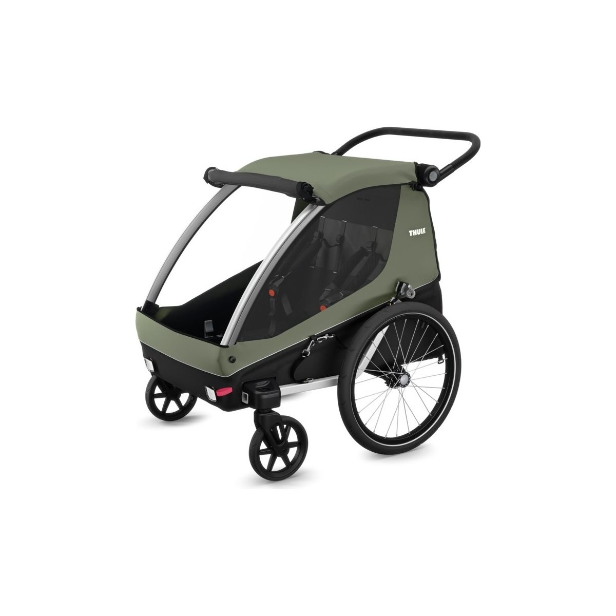 Ud over sin utrolige fleksibilitet tilbyder Thule Courier enestående kørekomfort og sikkerhed. Den leveres komplet med cykel- og gåkit og kan også suppleres med et specifikt hundekit (sælges separat). Med reflekshjul og et justerbart regn- og netoverdæk er du og dine børn klar til alle vejrforhold og døgnets alle timer.