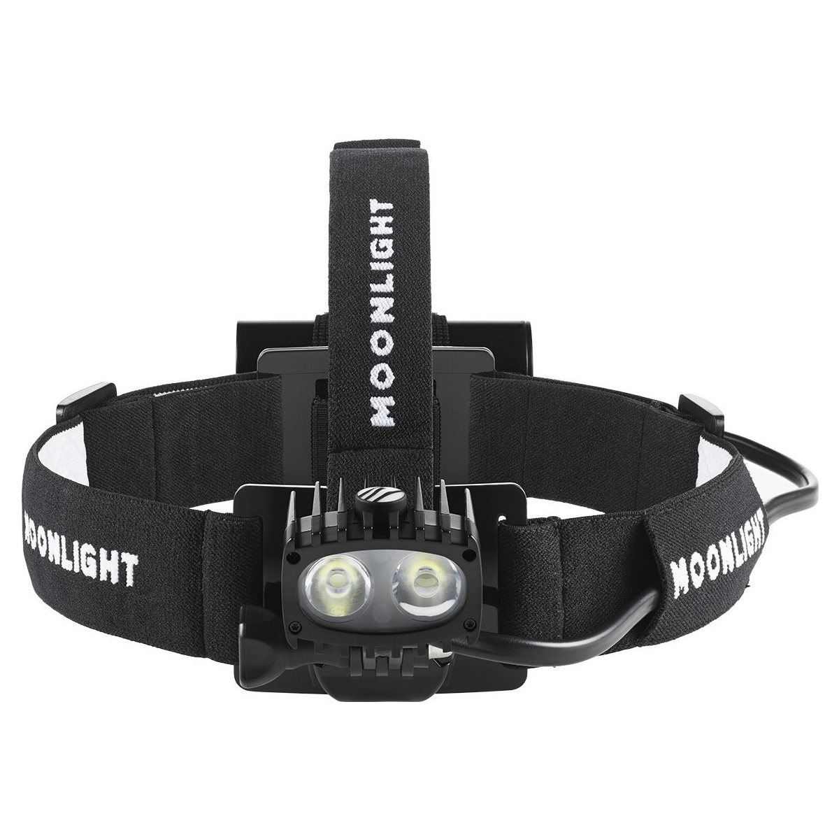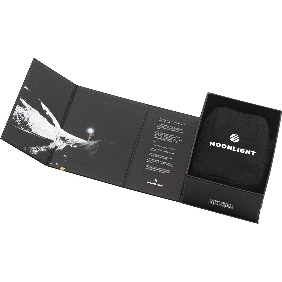 Den populære MOONLIGHT Bright As Day 1300 sørger for, at du kan håndtere mere eventyrlige aktiviteter end løb og vandring. Med 1300 ægte lumen gennem hele batteritiden og et kraftfuldt 9600 mAh-batteri kan du udforske mørket med en kraftfuld pandelampe, der desuden har ganske lang batteritid, uanset om det er til fods, på ski eller på cykel. Den har fire niveauer af lysstyrke at vælge imellem, SOS- og blitztilstand samt en solid batteriforbindelse (skrues på plads og sidder sikkert).