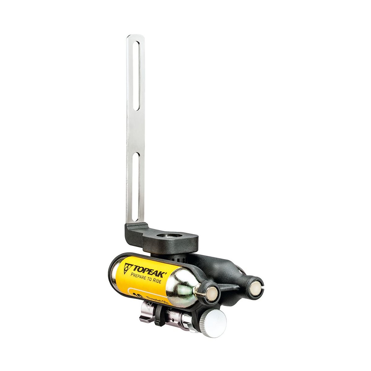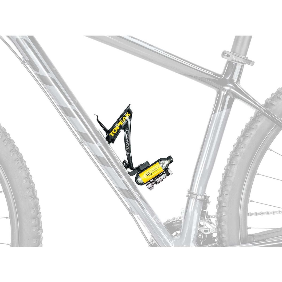 Den intelligente og fleksible kulsyre pumpe Topeak Ninja CO2 er et komplet sæt, som både er letvægts og praktisk, og som tillader montering af en flaskeholder direkte over pumpen. Inflatorn er en Micro AirBooster CO2, fremstillet af solidt CNC-fræset aluminium, og har et ventilhoved der passer til både Schrader- og Presta-ventiler. Sættet inkluderer to 16g CO2-patroner og aktiveres med en simpel drejning, når du skal fylde luft i.