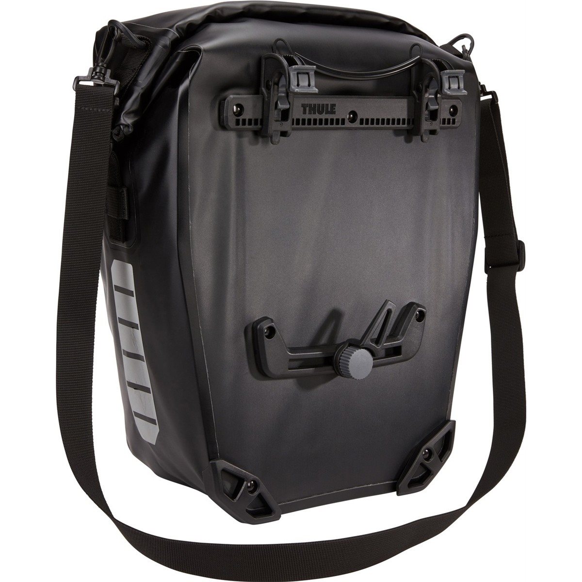 Kvalitets Thule Shield Pannier 25L Pair er et sæt med rummelige og vandtætte cykeltasker med et smart og letanvendeligt monteringssystem, der passer til alle typer cykelture. Taskerne monteres på bagagebæreren, og takket være de tre indvendige lommer kan du altid holde både papirer og andre mindre genstande velorganiserede. Taskerne er udstyret med aftagelige og polstrede skulderstropper, hvilket gør det nemmere at bære taskerne med sig, når de ikke sidder på cyklen. Takket være kombinationen af reflekterende paneler samt smarte fastgørelsesløkker til lygter på taskernes begge sider er der ingen problemer med synligheden, selv efter mørkets frembrud.