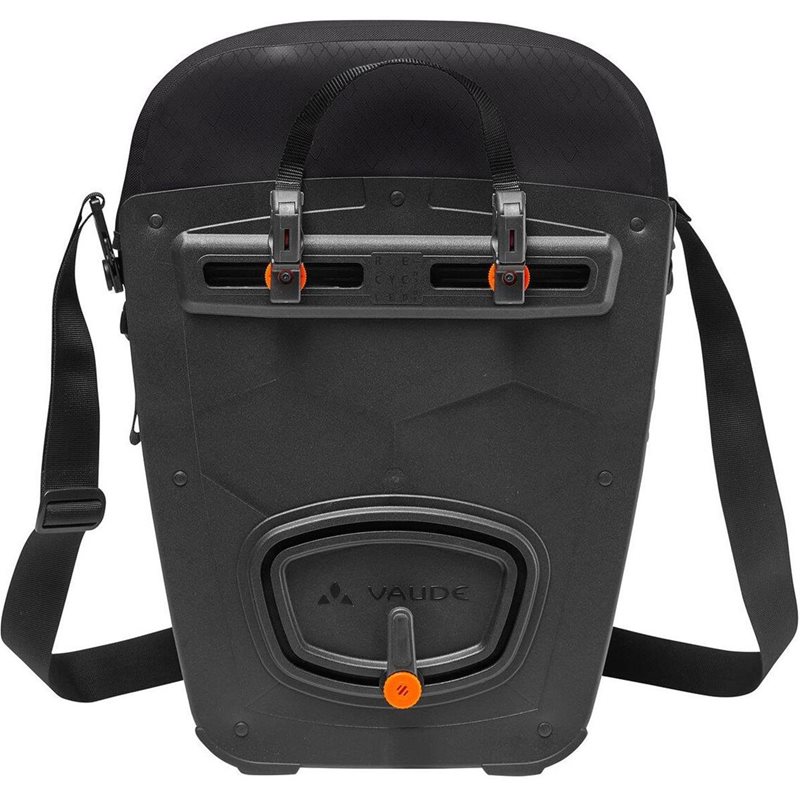 Hver taske har en indvendig lynlåslomme, der sikrer opbevaring af småting eller dokumenter. Disse enormt populære tasker er udstyret med en robust bagplade og kan monteres på højre eller venstre side af din bagagebærer. Den ekstremt solide bagside er fremstillet af genbrugsplast fra bilindustrien, og det brugervenlige monteringssystem gør installationen med én hånd nem og kan desuden finjusteres. De pålidelige QMR 2.0-fæstekroge er låsbare (lås medfølger IKKE!) og passer til rør med en diameter på op til 16 mm, så taskerne står stabilt, også når du cykler på ujævnt underlag. Hver taske inkluderer en smart aftagelig skulderrem, som også kan anvendes som pakkestrop.