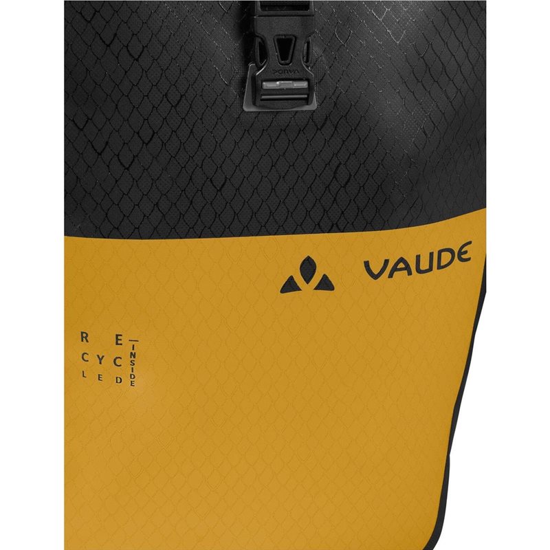 Pendle eller cykle rundt i verden? Du vil forelske dig i denne bagageholder til baghjulet! Denne vandtætte bagageholder er fremstillet af genanvendte materialer hos det tyske VAUDE-hovedkvarter ved Bodensøen. Den kan tilpasses til præcis den størrelse du behøver med sin rullelukning og er fuldstændig vandtæt. En intern organiseringslomme med lynlås sikrer opbevaring af småting eller papirer. Den individuelle baghjulsbagageholder er forsynet med en solid rygplade og kan fastgøres på enten højre eller venstre side af dit udstyrsstativ ved hjælp af QMR 2.0-krog systemet. Kroge kan nemt justeres med brugervenlige drejeknapper og kan låses direkte på QMR-krogen med en U-lås (f.eks. TSA Lock II). Udstyret med refleksdetaljer. I leverancen indgår en 24 liters taske, der kan fastgøres på ethvert udstyrsstativ med en rørdiameter på op til 16 mm. Aqua Back Single kan udvides med et af disse praktiske tilbehørspunge: SortYour Back, SortYour Business og Addita Bag. En aftagelig skulderrem gør det behageligt at bære over skulderen. Tasken er fremstillet med bæredygtig, vandafvisende Eco Finish uden brugen af fluorkarboner (PFC). VAUDE Green Shape-mærket symboliserer miljøvenlige, funktionelle produkter lavet af bæredygtige materialer.
