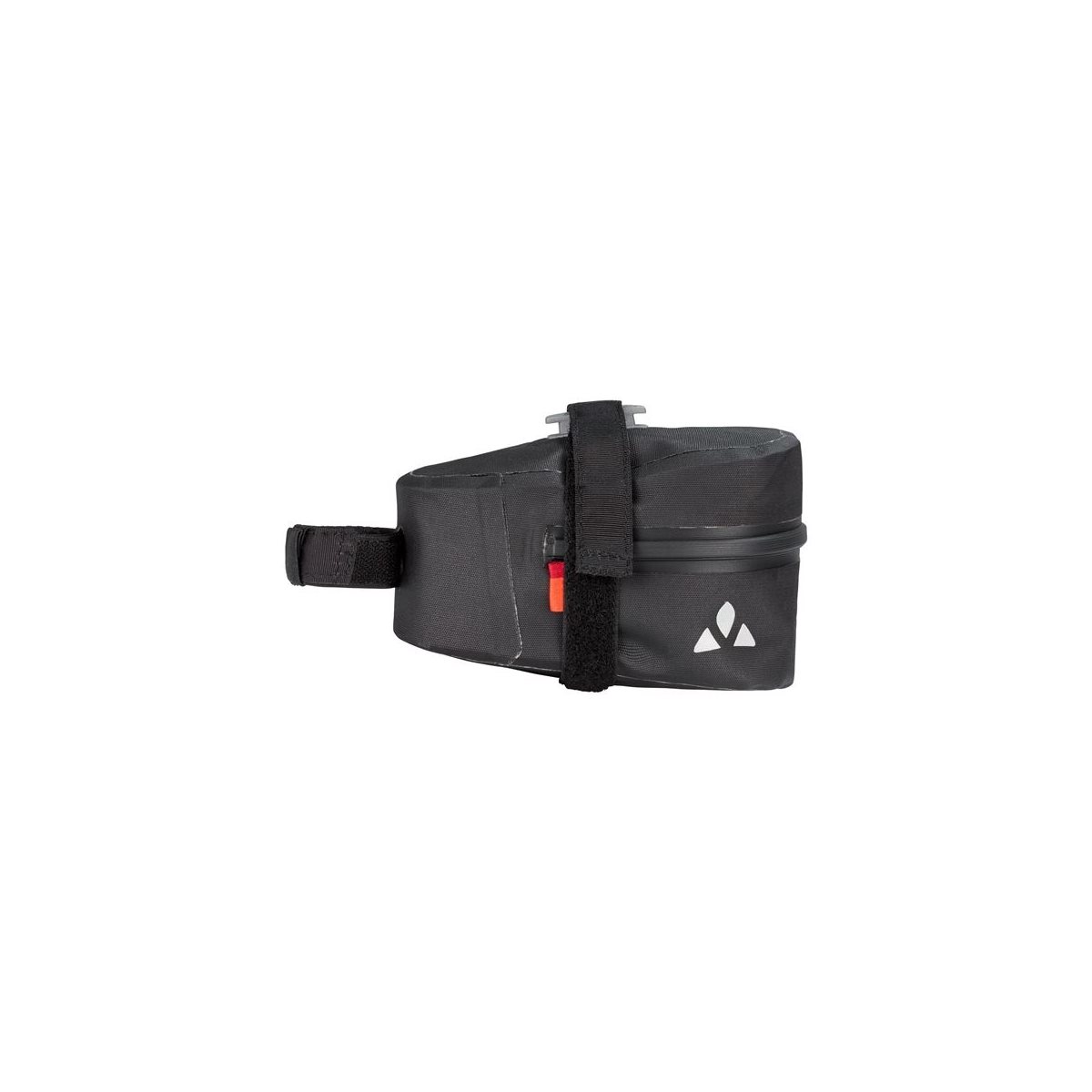 Den vandtætte sadeltaske Vaude Tool Aqua har overraskende meget plads, mere end man skulle forvente, og tilbyder nemt rum til både værktøj, ekstra energigivere og andre småting. Den er let at montere med justerbare velcrobånd, som du hurtigt kan fastgøre omkring sadlen og sadelpinden.