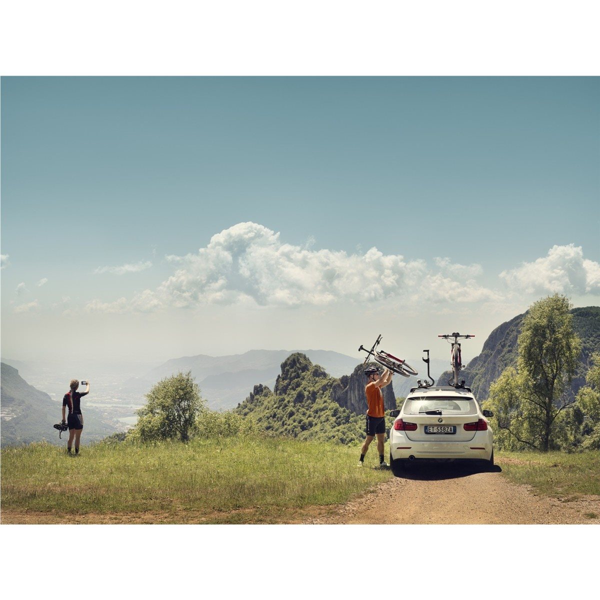 Cyklen kan desuden låses fast i selve cykelholderen, som igen kan låses fast i tagbagagebæreren (lås medfølger), hvilket sikrer, at du tør efterlade cyklen i holderen uden at være alt for nervøs.