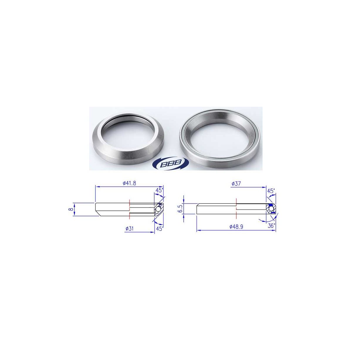 Løse lejer til koniske styrfittings. Øvre leje diameter: 1.1/8” – 41.8 mm. Nedre leje diameter: 1.3/8” - 48.9 mm. 36ºx45º forseglede chromo lejer. Passer til: BHP-456 og andre af samme størrelse