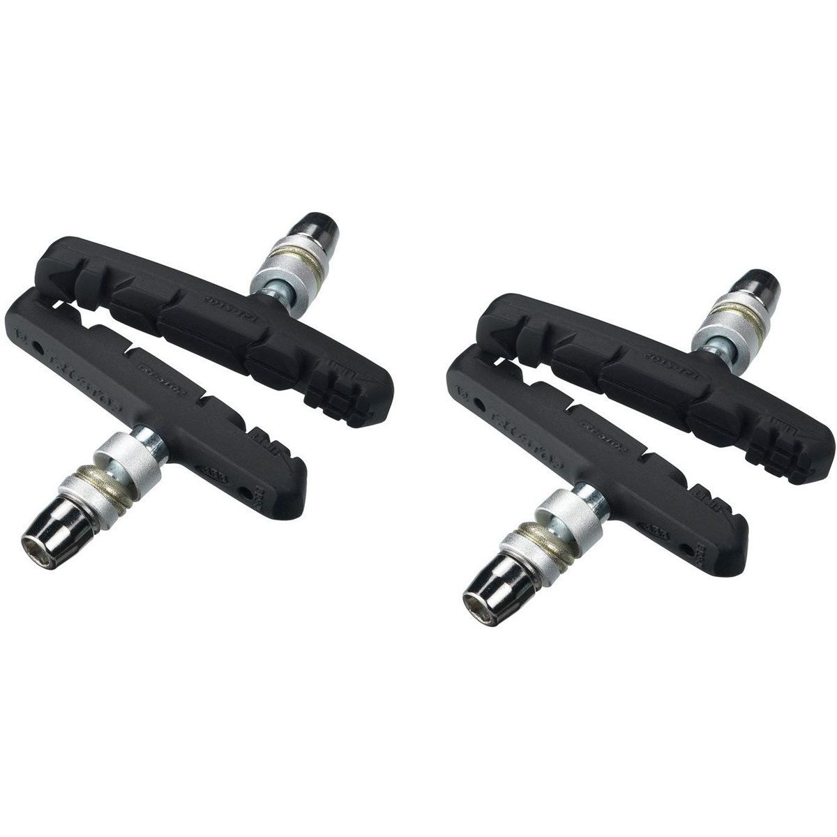 En helstøbt bremseklods til V-bremser. Designet er specialtilpasset for at sikre effektiv opbremsning med 3 konturer. Klodsens mønster renser, bremser og dæmper skrigeri. Fungerer lige så godt i våde som i tørre forhold. 2 sæt - Komplet sæt til en cykel.