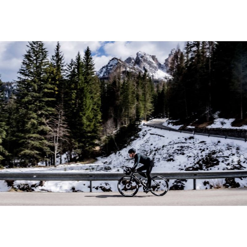 Silicongrebet i taljen holder trøjen på plads under cyklingen og forhindrer den i at ride op. Elastiske manchetter ved ærmeenderne skaber en tæt pasform på armene og forhindrer kold luft i at trænge ind.