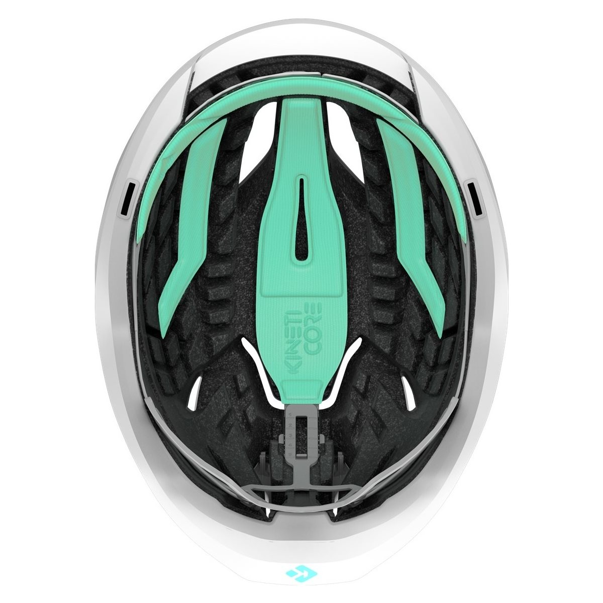 Beskyttelse mod rotationskræfter i cykelhjelme er i dag almindeligt, men traditionelt har det ofte krævet ekstra komponenter, som påvirker vægt, pasform eller ventilation. Lazer har derfor udviklet KinetiCore, en integreret beskyttelse, der fungerer som deformationszoner i moderne biler. Specialdesignede EPS-blokke absorberer skadelige rotationskræfter og beskytter hovedet ved både direkte og skrå slag. Denne løsning gør hjelmen lettere, bedre ventileret og mere behagelig, samtidig med at plastforbruget reduceres, og klimaaftrykket bliver lavere.