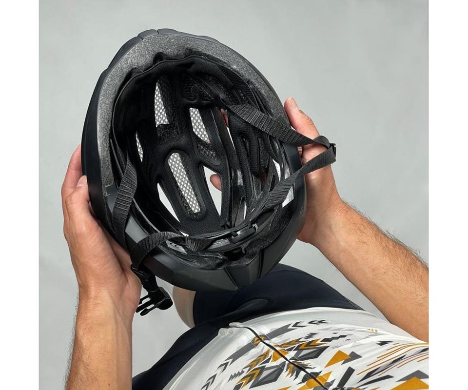 Hjelmen har aftagelige og vaskbare stødabsorberende skumpuder. Derudover giver hjelmen beskyttelse mod insekter med et net foran, så du kan tage af sted og føle dig frisk.
