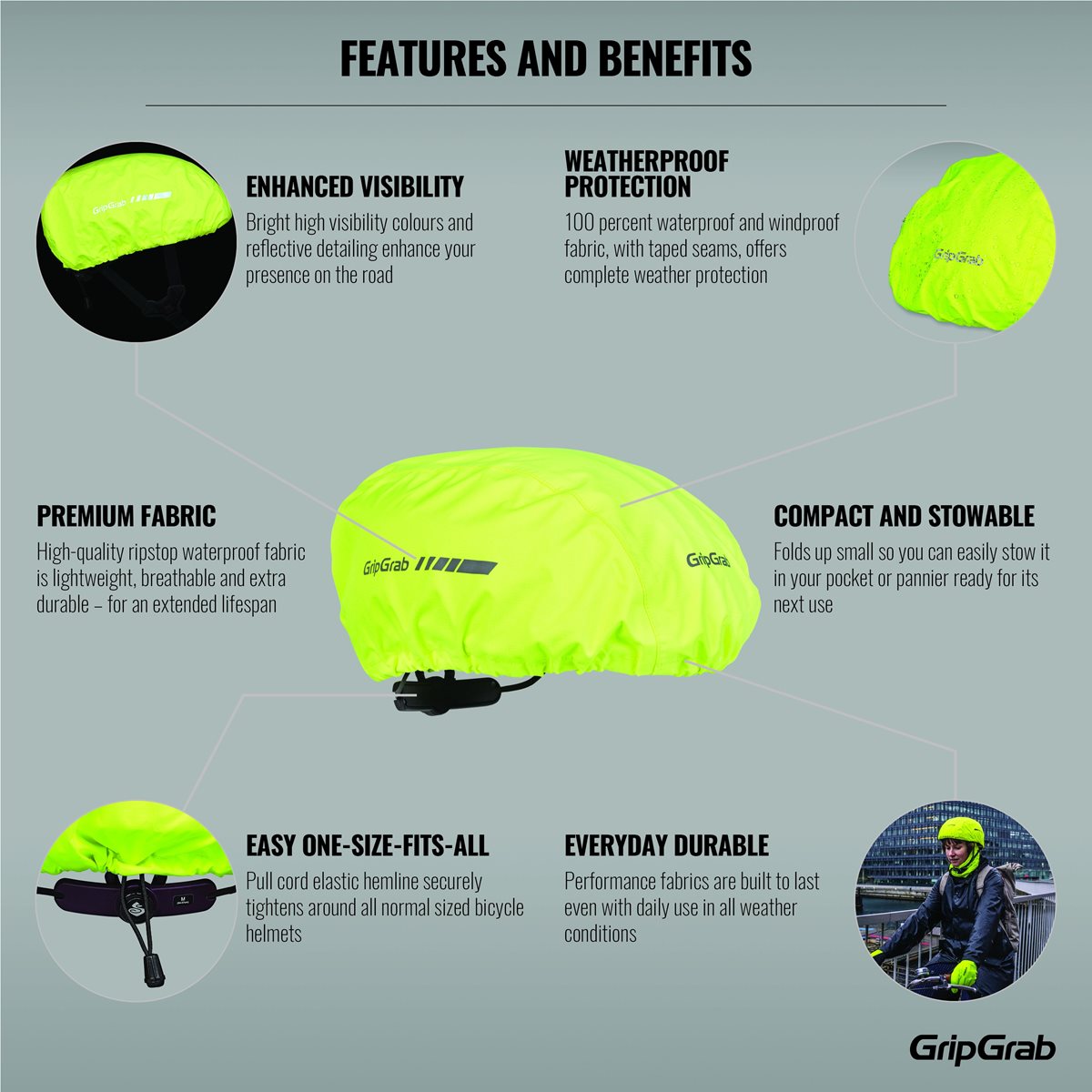 GripGrab Hjelmovertræk er fremstillet af et helt vandtæt materiale og designet til at dække hele hjelmen. Overtrækket effektivt blokerer for vinden og holder regn samt sne ude, hvilket forøger komforten ved cykling under kolde og våde forhold. En elastisk justeringssnor sikrer en god pasform på mange forskellige hjelmtypar.