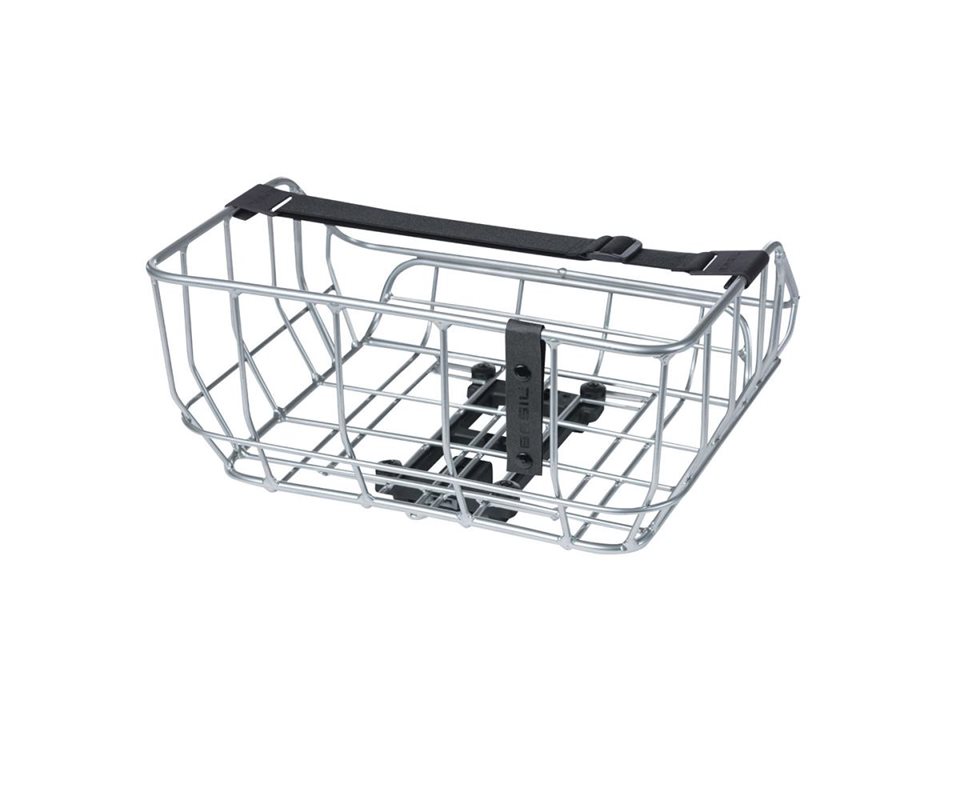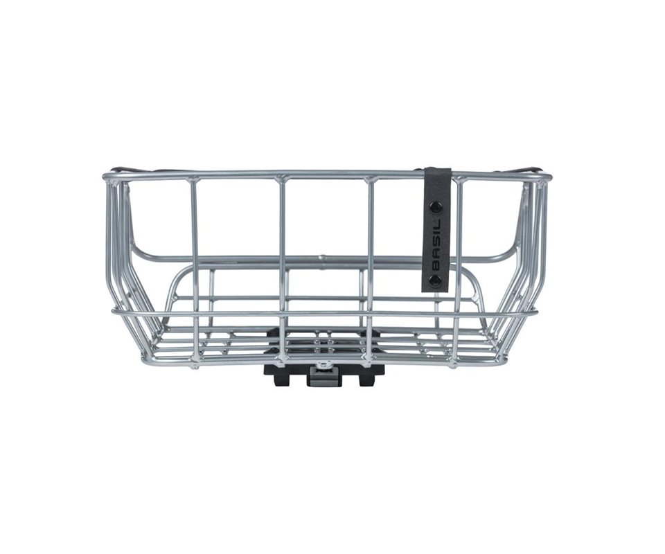 Populære Basil Basket Rear Portland er en cykelkurv i aluminium med elegant slank design. Kurven har en aftagelig og justerbar rem, som du nemt kan klikke på kurvens kant. Den har en kapacitet på 25 liter og er egnet til MIK-system holdere og plader; derfor leveres den med en MIK-adapterplade, der sikrer, at du nemt kan fastgøre kurven. Med denne cykelkurv vil du kunne nyde hver cykeltur: uanset om det er til supermarkedet eller på ferien!