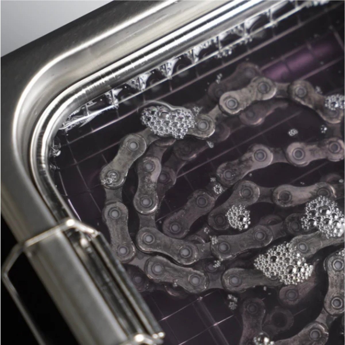 Dynamic Bike Care Super Sonic Ultrasonic Cleaner er en digital ultralydsvask designet til at rengøre din cykelkæde grundigt. Ultralyden genererer millioner af mikroskopiske bobler, som imploderer med kraft mod hvert led og løsner snavs, fedt og olie fra steder, som en børste aldrig når. En ren kæde forlænger hele drivlinjens levetid og reducerer effekttabet.